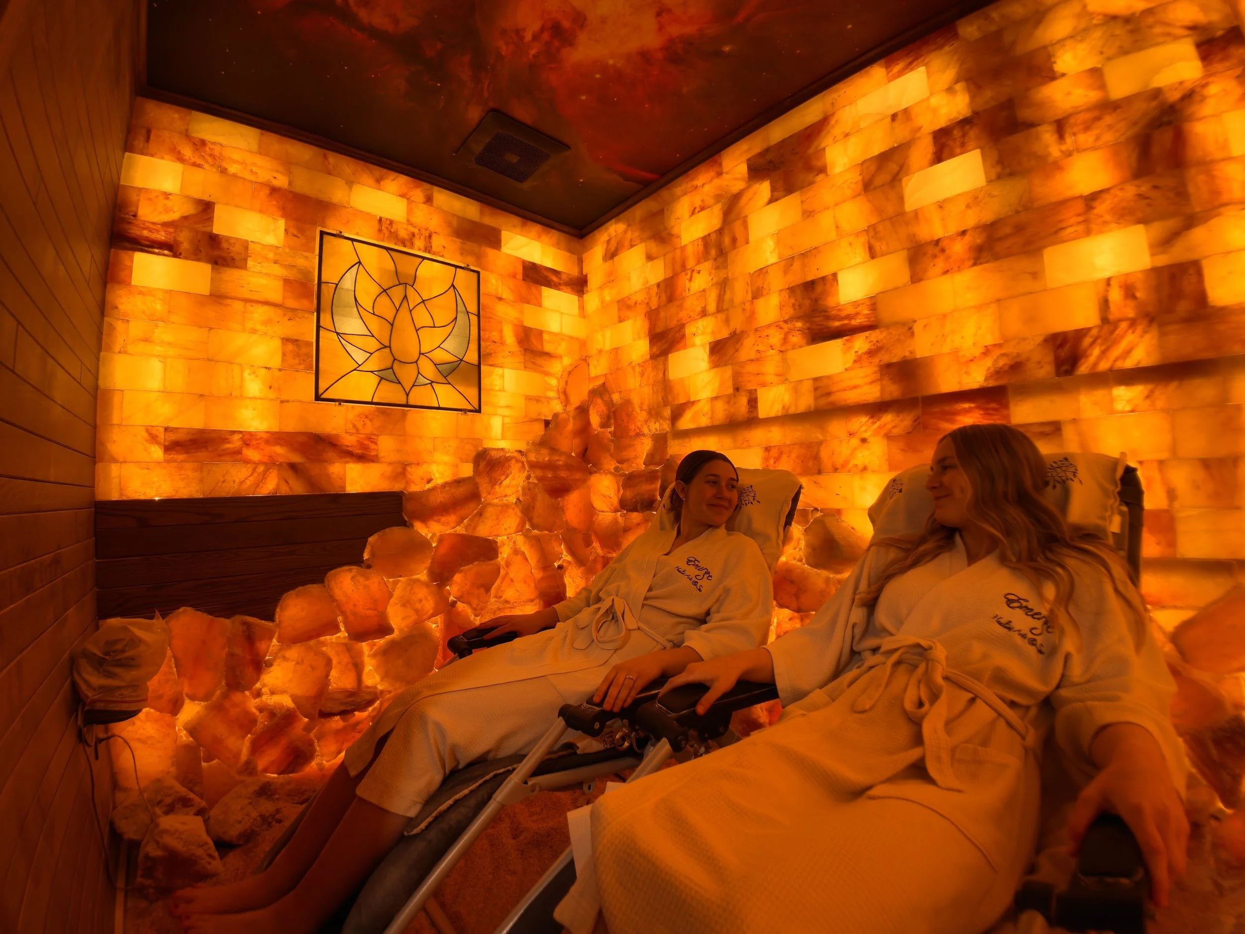Our peaceful salt cave sanctuary is an invitation to escape your daily hustle and arrive at a sacred place within yourself. Under the boundless skies and therapeutic salt glow in our cave, so much more can feel possible. With each inhalation you feel yourself soften. Come bathe in the bliss of deep therapeutic breaths, respiratory benefits, and self care. Support your body's natural healing process of detoxification and relaxation.